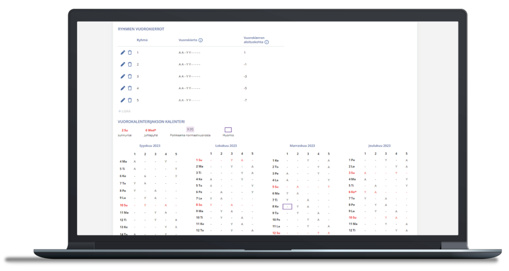 Vuorokalenterit ovat osa Vuorosuunnittelu Complete -palvelutasoa.
