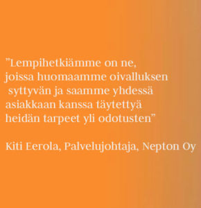 Neptonin asiakaspalvelussa asiakkaat tunnetaan
