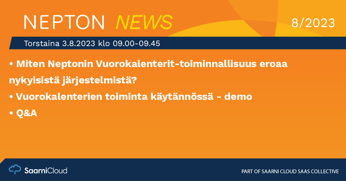 Lähetyksessä paneuduttiin 8.7.2023 lanseerattuun Nepton Vuorokalenterit -toiminnallisuuteen: